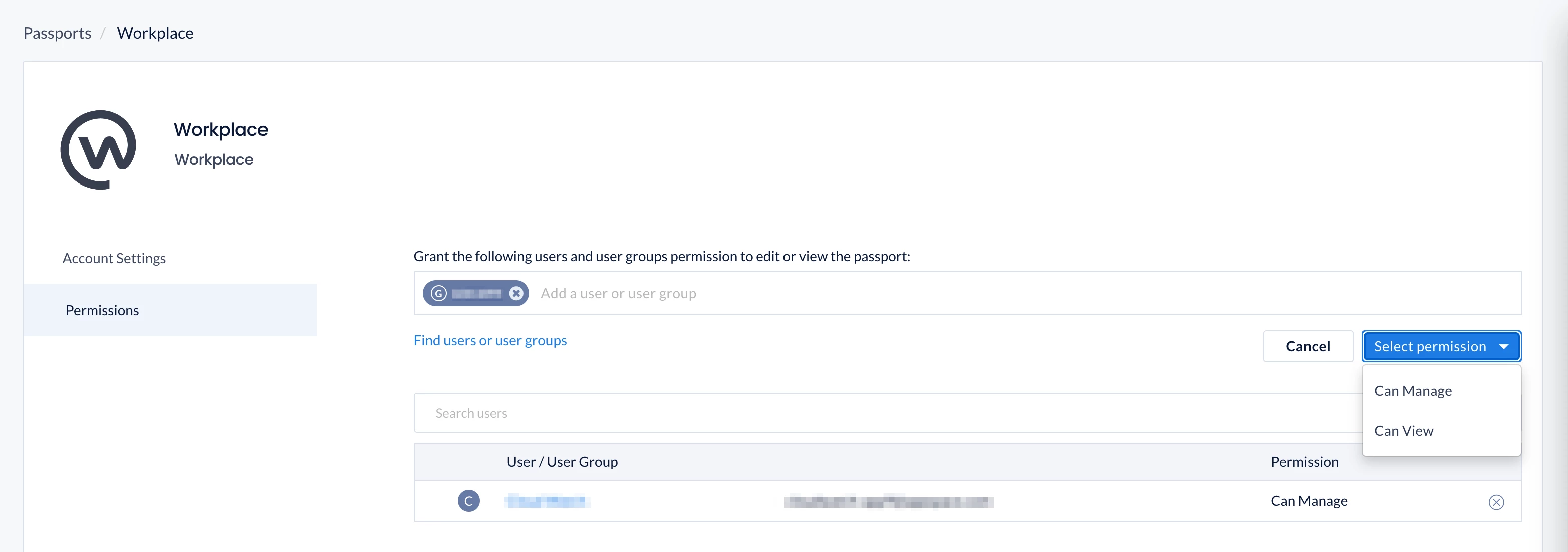 - Enter and select the users or user groups from the drop-down list, and select the permissions to grant from the Select permissions drop-down menu.