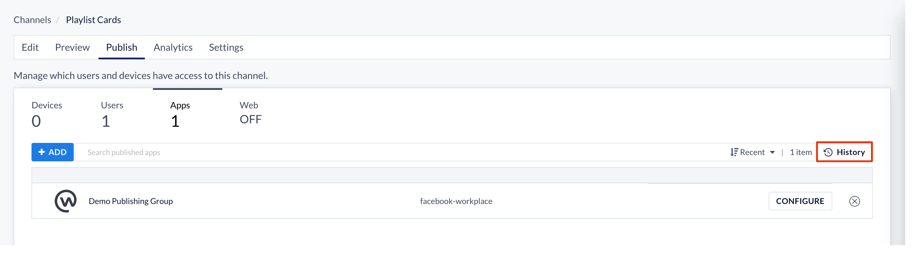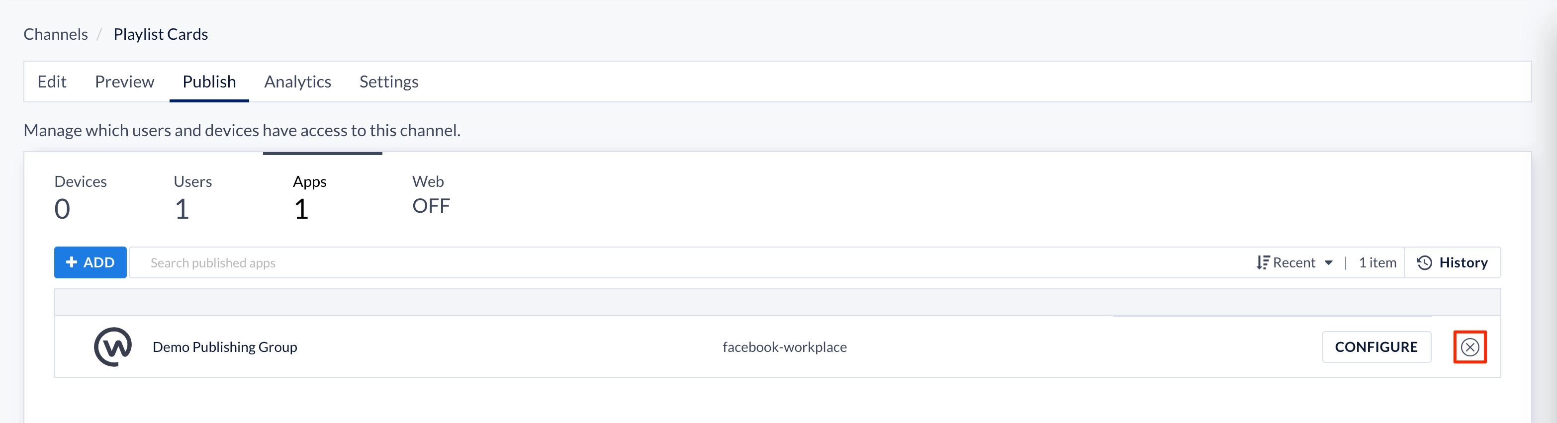 The instructions below show you how to remove the published playlist channel from Workplace group.