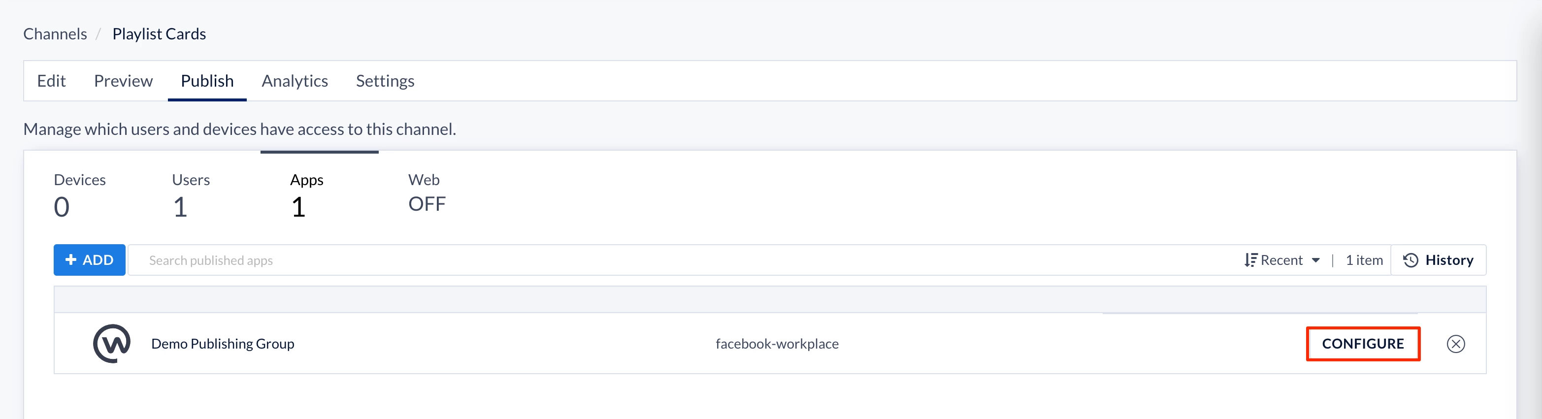 - Proceed to the Configure Channel Publishing Settings for Workplace section below.
