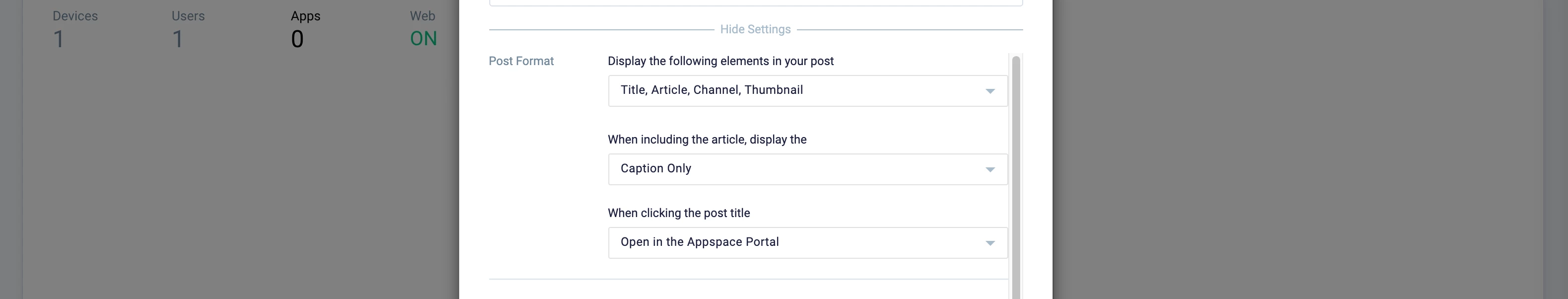 If the Post Format settings were configured to “Open in Appspace” when the post title or thumbnail is clicked, then when a viewer/user in the Workplace group clicks the post, they will be redirected to the Employee View.
