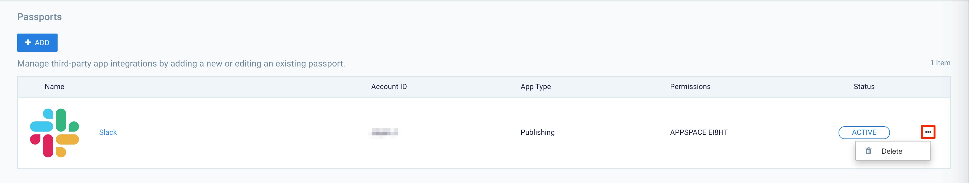 - Click the ☰ Appspace menu, and select Integration, and click the Passports tab.