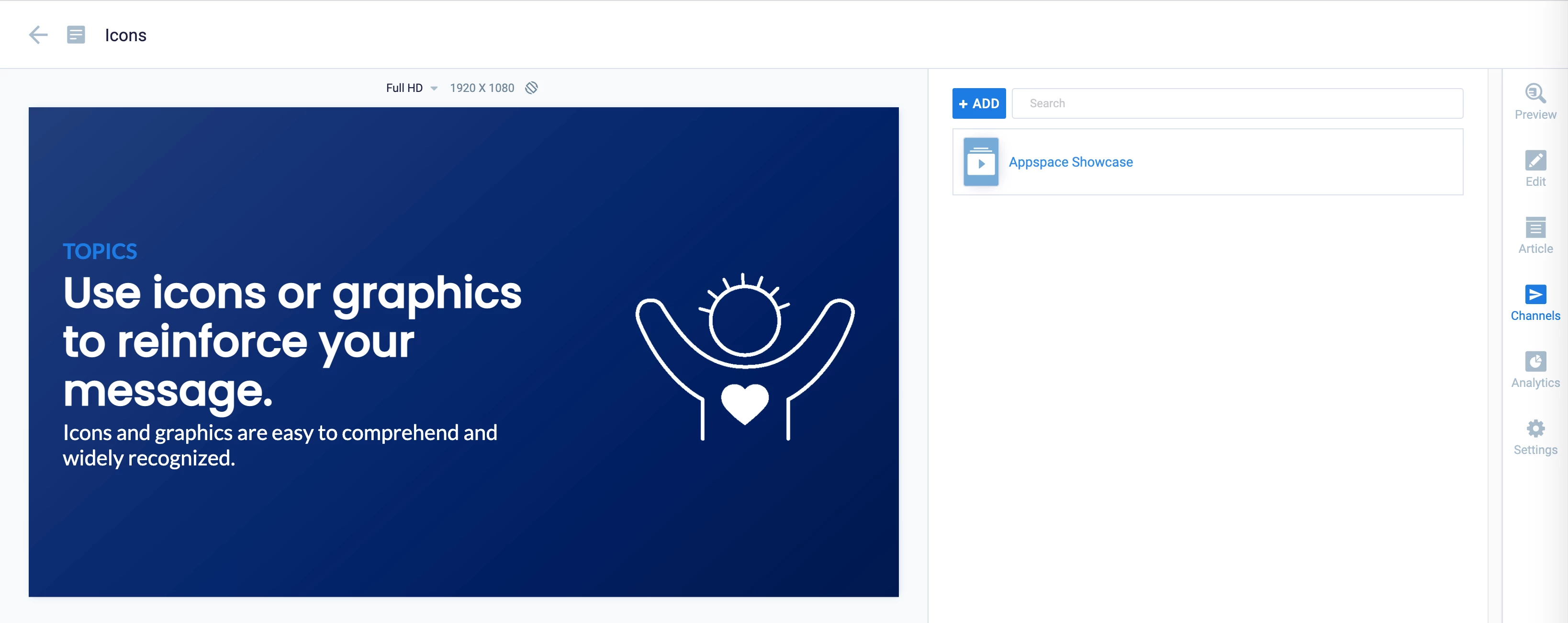 - Select Channels from the ☰ Appspace menu, select a channel, and click the content.