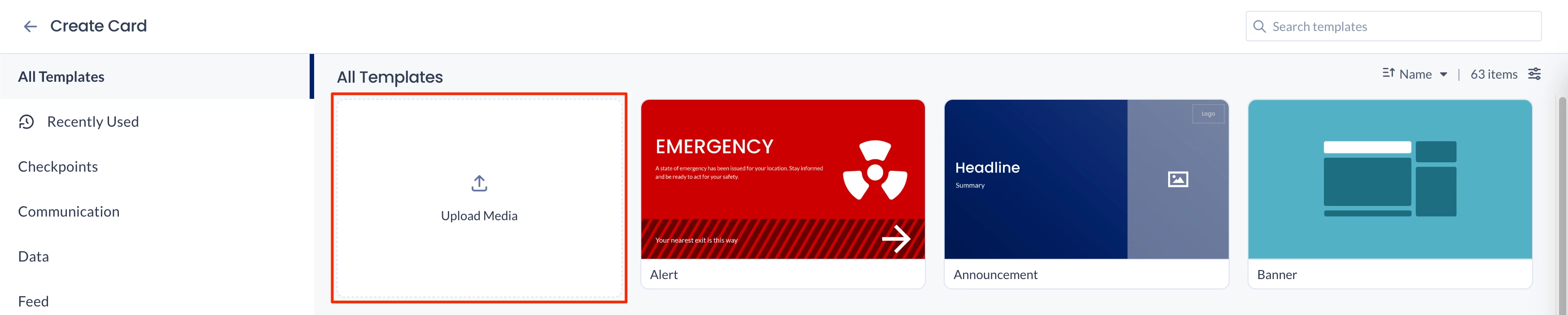 - Select the desired card template available, or if you’re looking to upload an image or video content, please refer to the section below.