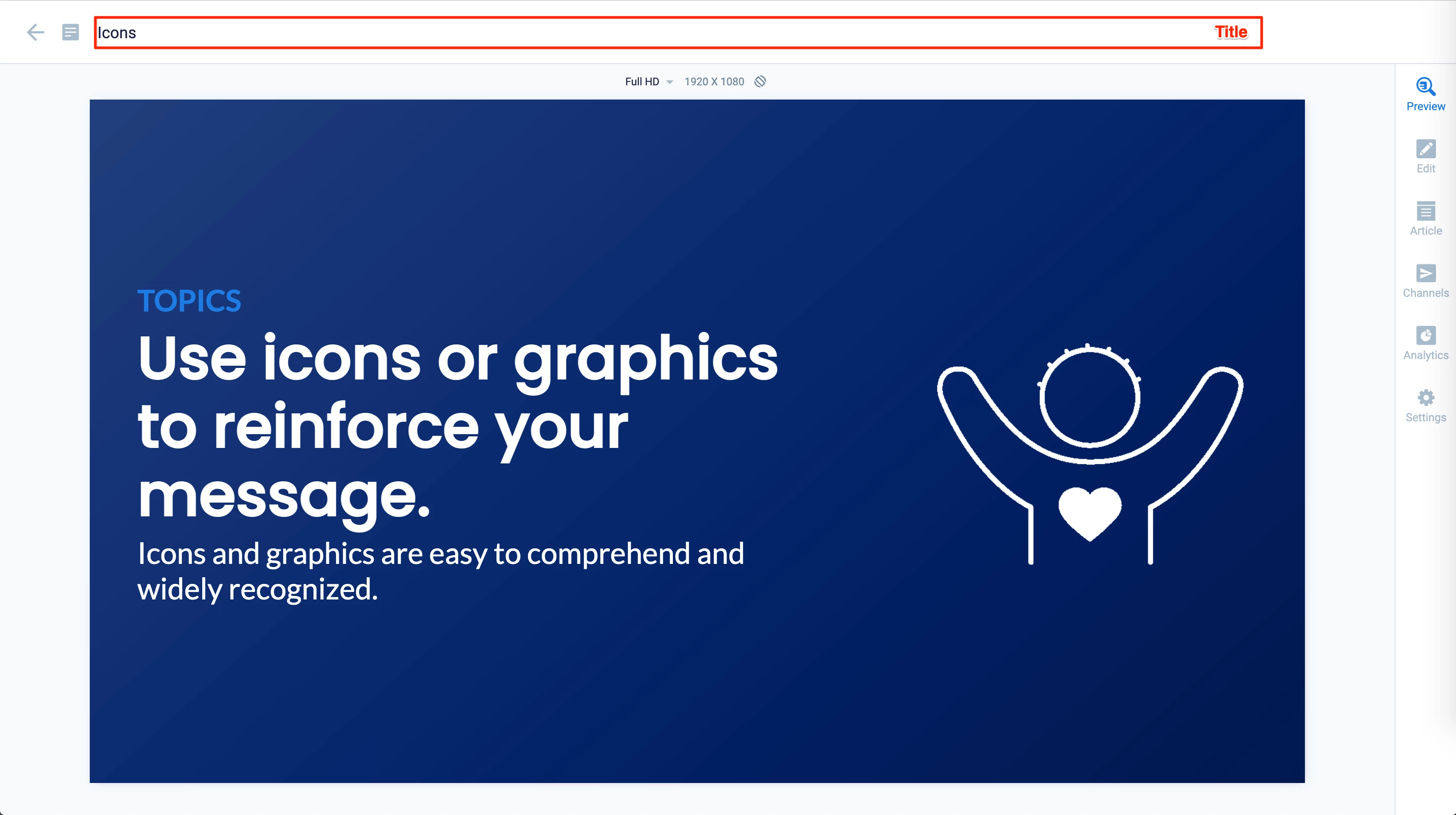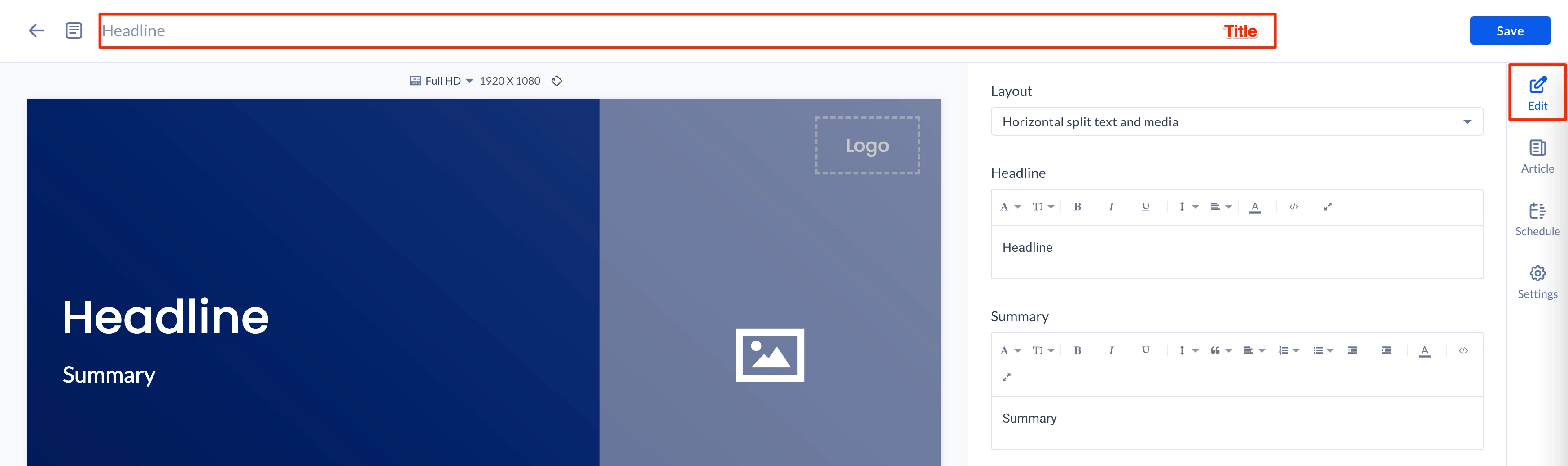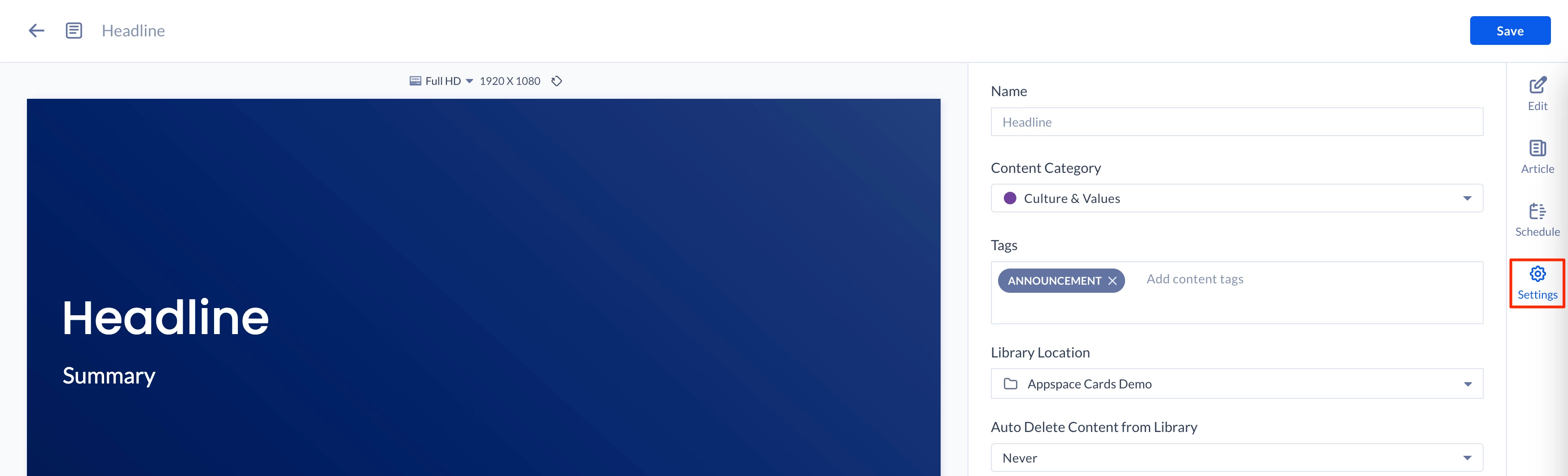 - You may edit the Title of the card content. This is a mandatory field, while also acting as the filename for the content when added to the Library.