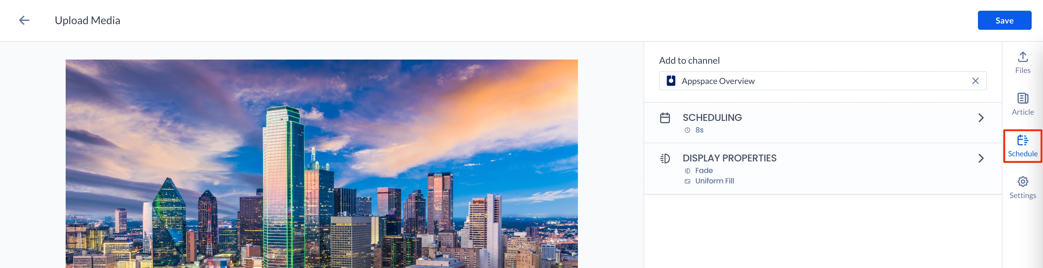 - Click Upload Media and select or drag-and-drop media content files you wish to upload to the Appspace platform.