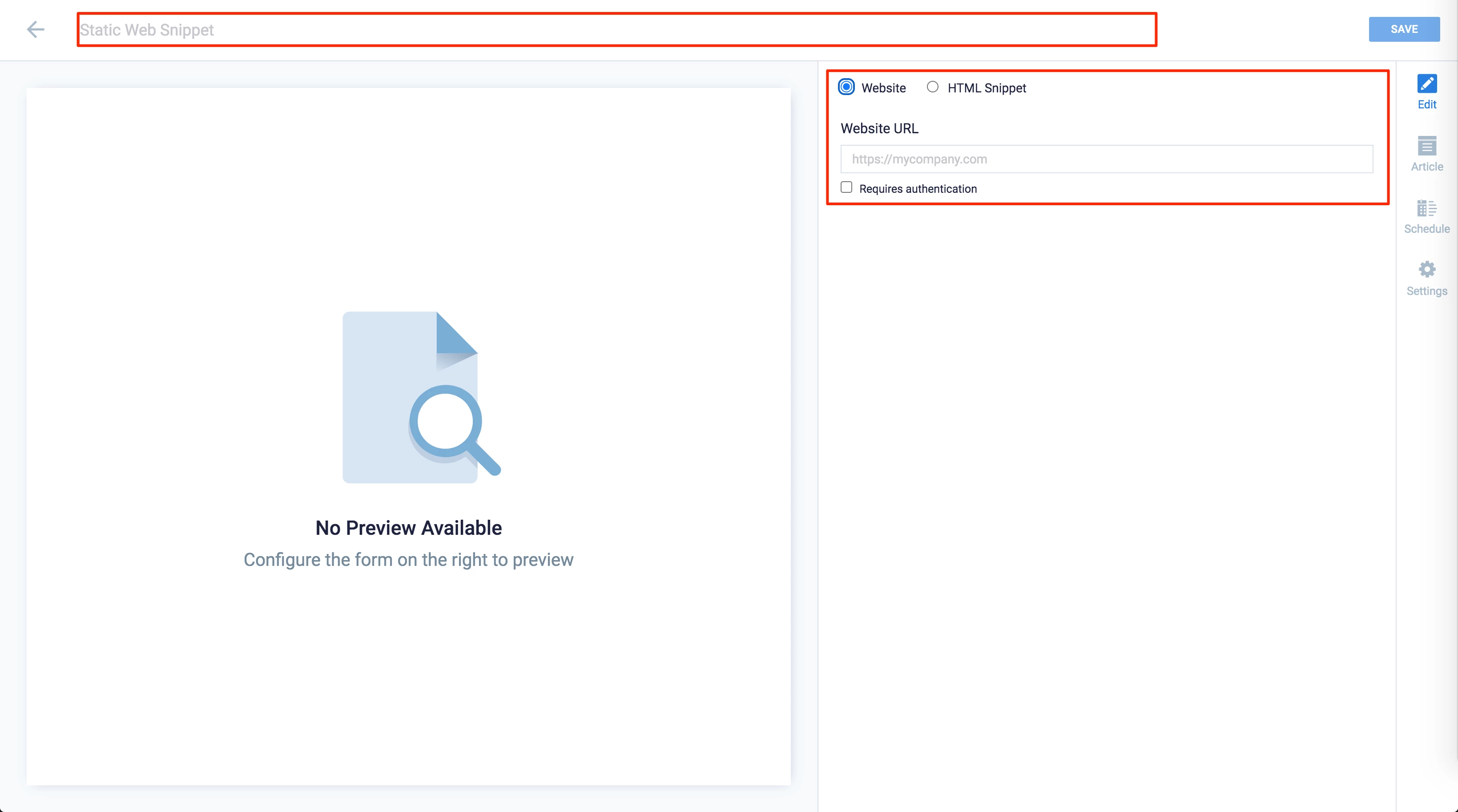 - Select the HTML Snippet option if you would like to embed an HTML code.