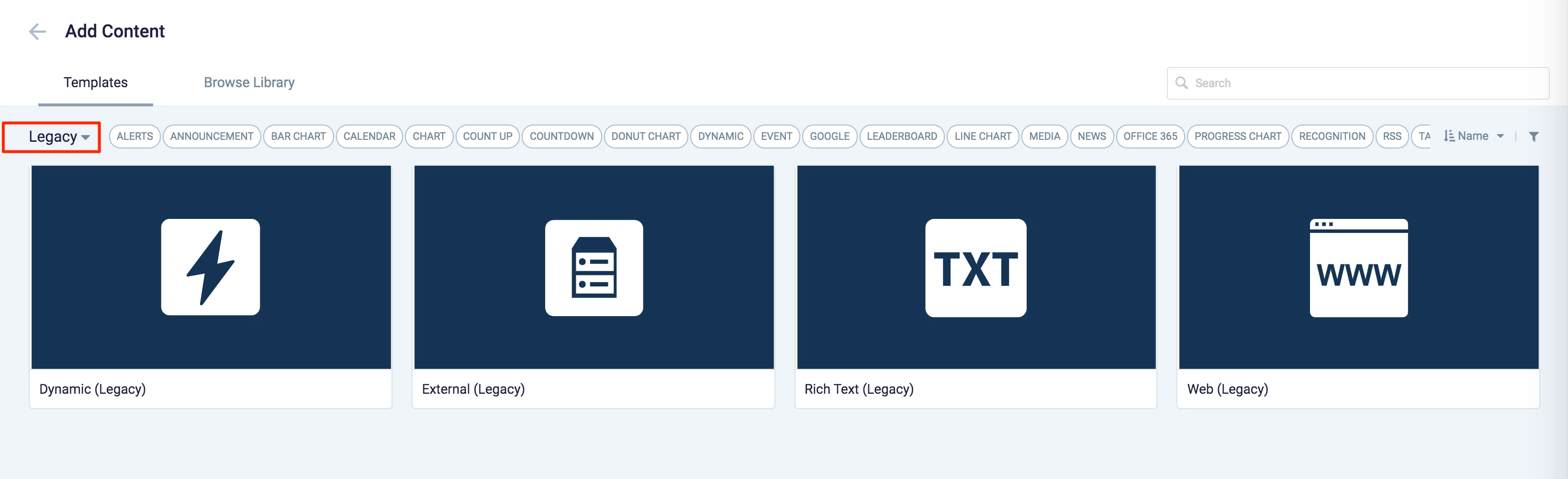 - Select Legacy from the All Templates drop-down menu, and click Web (Legacy).