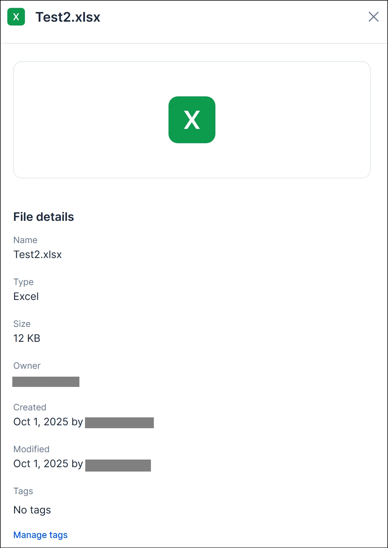Each file in the the Document Libraries displays rich metadata to give administrators full context at a glance, without needing to download or open the file. To open the metadata details window, click the ellipsis option button at the far right section of the file, and select Details.