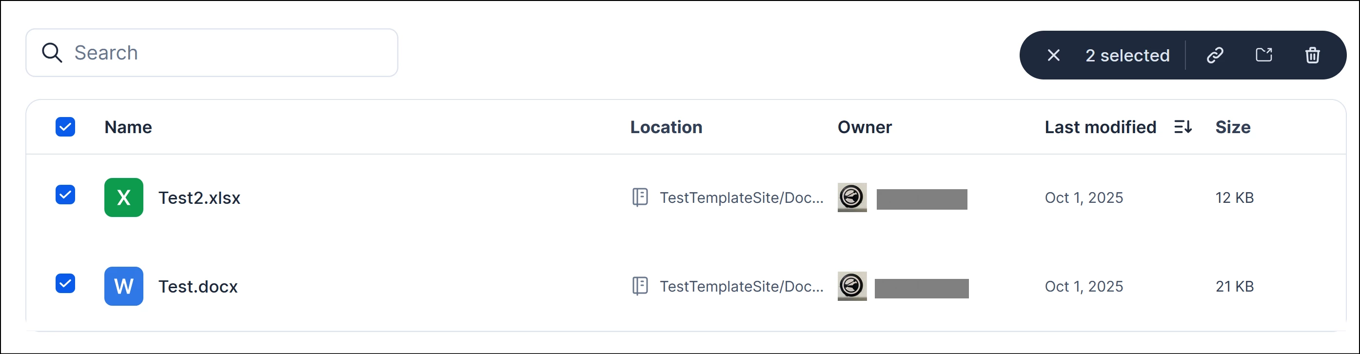 Administrators can select multiple files at once and apply bulk actions to manage content at scale efficiently.