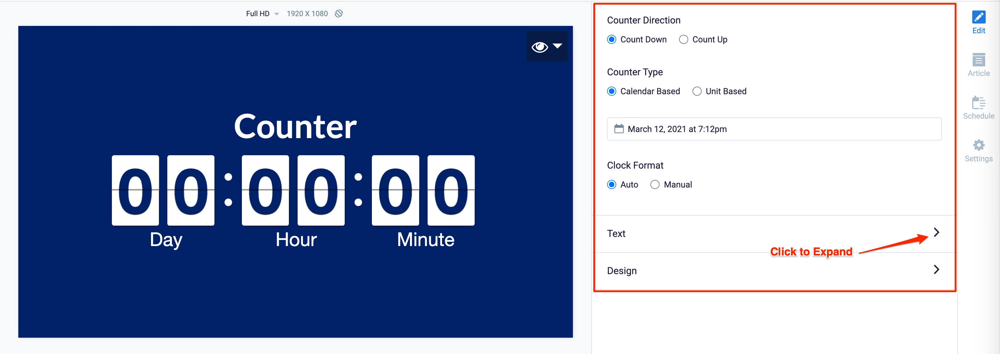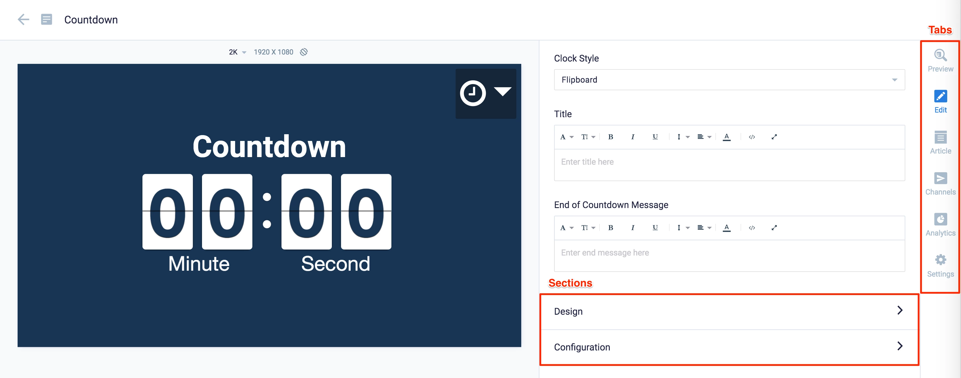 - The Calendar icon in the card section has been changed to a Preview (Eye) icon which allows users to preview the end messaging that is displayed when the countdown ends.