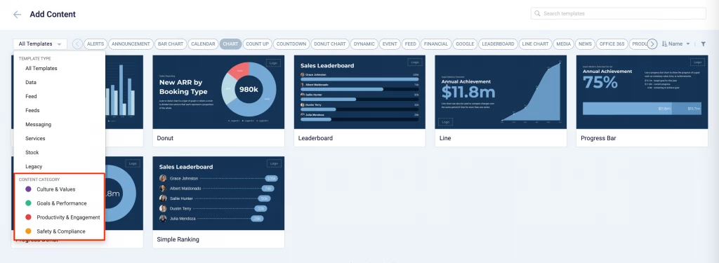 With the introduction of Content Categories in Appspace 8.0 ac.22, all card themes will be assigned with a default content category, allowing organizations to create content, build channels, and target messaging according to workplace communications best practices and internal communication goals.