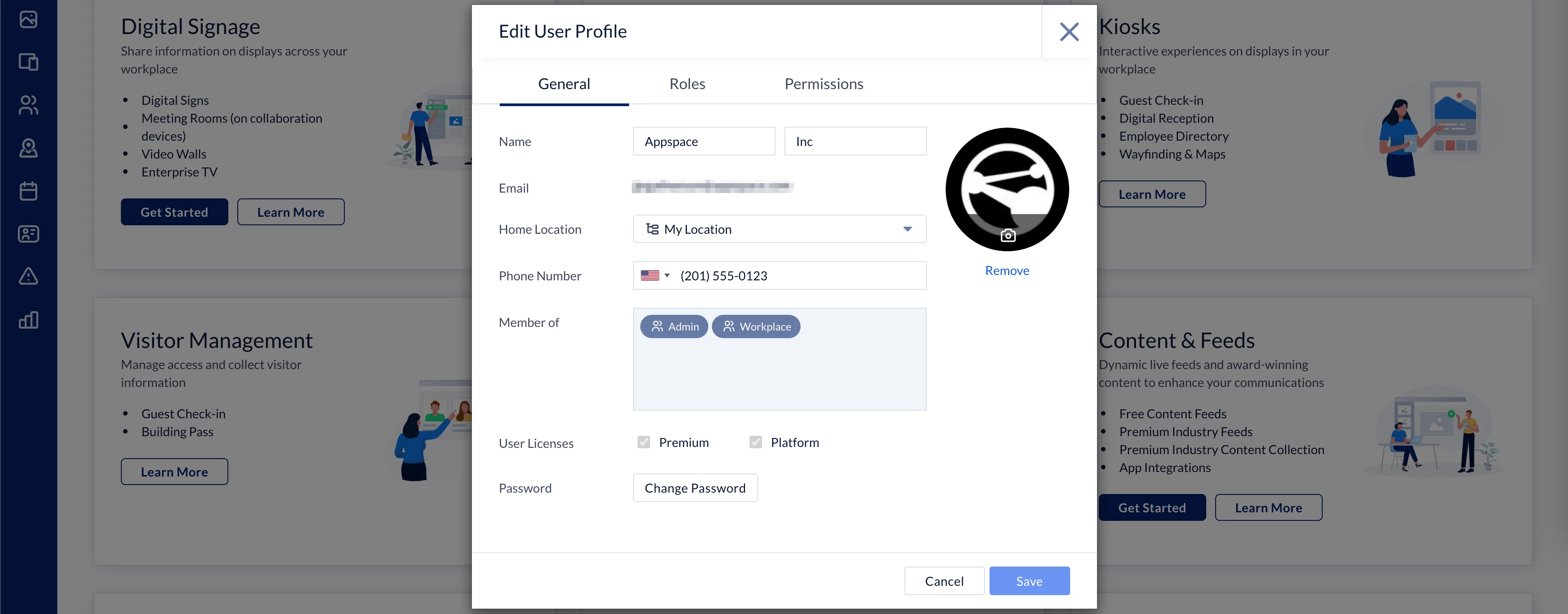 - User Account with both Platform and Premium user licenses – User is directed to the Appspace console, with the ability to switch to the Employee View.