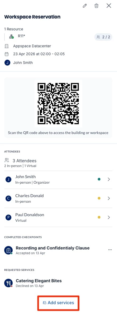 - View Attendees – View the list of attendees for the reservation.