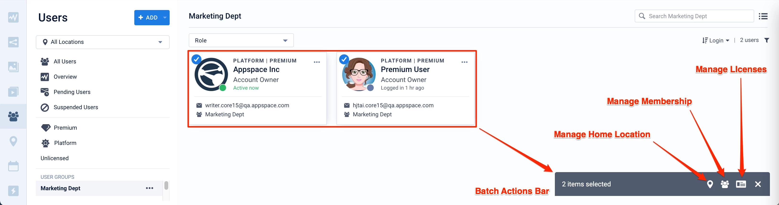 - Manage Membership – Assign the User Group Memberships to multiple users: