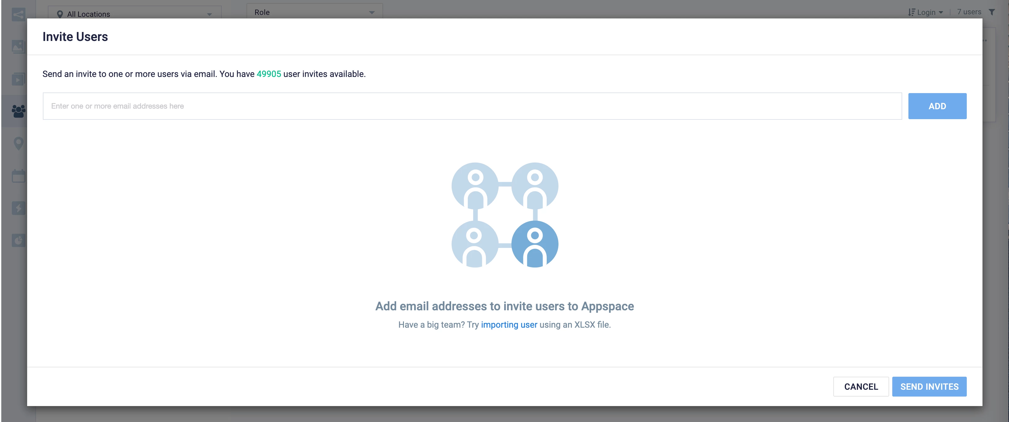 Optionally, you may import an .xlsx spreadsheet to batch invite multiple users.- Ensure the .xlsx spreadsheet is imported using the following format: