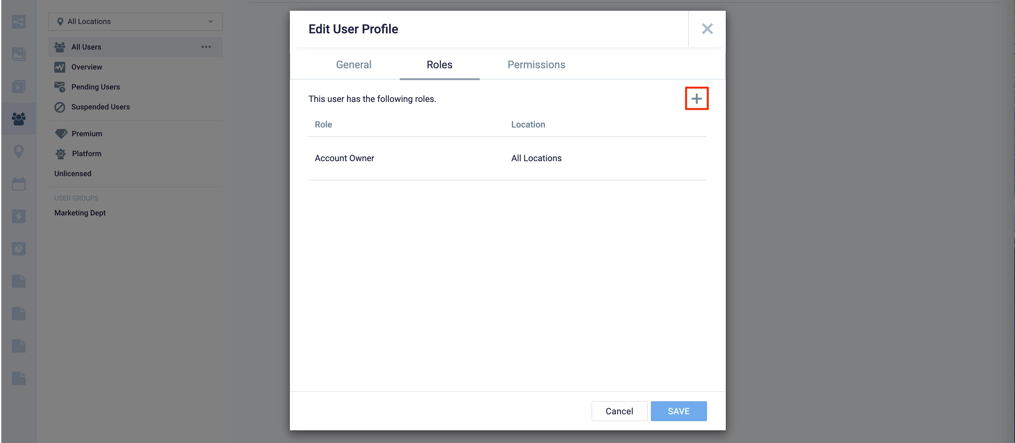 Once a user has accepted the user invite, Account Owners or Location Admins are able to edit the user details, assign user groups, assign user roles, and grant specific permissions in the Edit User Profile page.