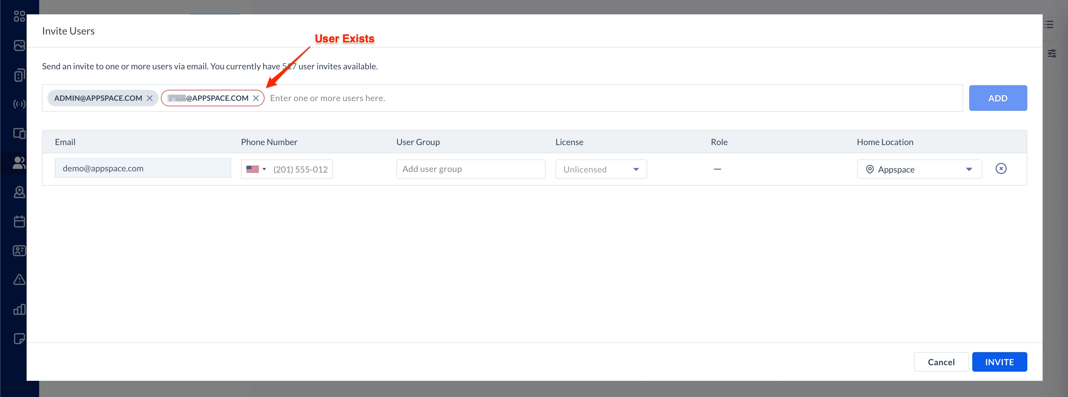 The user creation workflows have been streamlined into a single workflow, ensuring that you’ll always encounter the same UI and workflow, no matter where you start inviting a user or editing a user profile from, within the Appspace console.